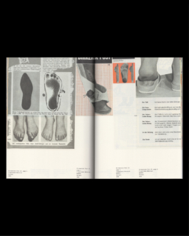 Drei verschiedene Papiersorten gliedern das Buch in Sektionen. Der erste Abschnitt mit Archiv- und historischen Dokumenten ist auf gelblich getöntem, halbtransparentem Papier gedruckt. Der mittlere Abschnitt, der den Schwerpunkt auf Fotografien und Anzeigen legt, verwendet glänzendes, graustichiges Papier. Der letzte Abschnitt ist auf strahlend weißem, glänzendem Papier gedruckt, ähnlich wie in Modezeitschriften und Kunstkatalogen. Der blindgeprägte Einband besteht aus extra rauem Karton und zeigt die erste bekannte Erwähnung eines Birkenstock-Schuhmachers aus dem Jahr 1774.