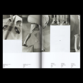 Drei verschiedene Papiersorten gliedern das Buch in Sektionen. Der erste Abschnitt mit Archiv- und historischen Dokumenten ist auf gelblich getöntem, halbtransparentem Papier gedruckt. Der mittlere Abschnitt, der den Schwerpunkt auf Fotografien und Anzeigen legt, verwendet glänzendes, graustichiges Papier. Der letzte Abschnitt ist auf strahlend weißem, glänzendem Papier gedruckt, ähnlich wie in Modezeitschriften und Kunstkatalogen.